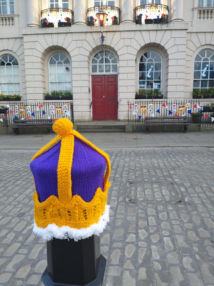 It’s only 8.05 a.m., and even on a music station like Radio 3 there’s no escape from unremitting Coronation fever. Before I go and hide, I’ll share images I took the other evening in Ripon, which has chosen to celebrate by yarn bombing the city centre.