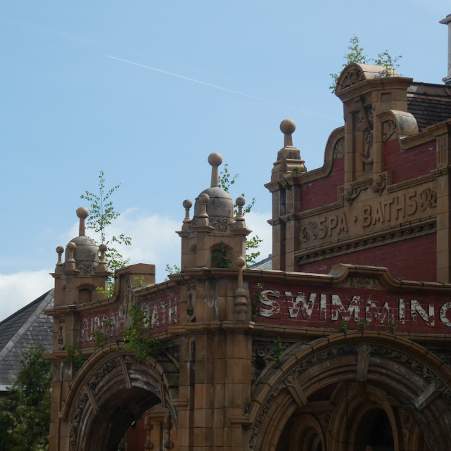 Poor old Ripon Spa Baths. A hundred and twenty years old, and now – quite literally – put out to grass. We have a new Leisure Centre here in town now. These Edwardian baths are now surplus to requirements and up for sale. Meanwhile, doughty seedlings and saplings commandeer cracks in the mortar and gaps in the tiling: putting down roots that will let water in and begin to crumble brickwork.