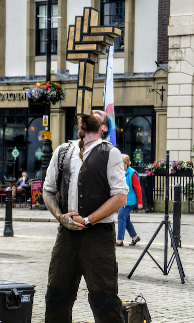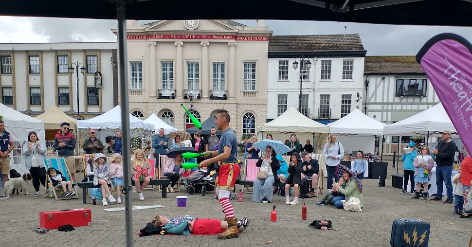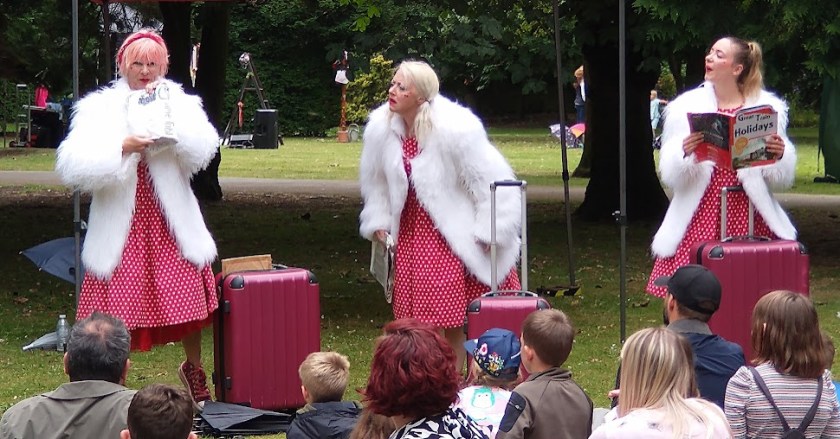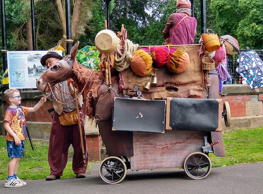 It was Ripon’s third Theatre Festival last week, and the weekend was to be given over to the streets and the park for theatre-in-the-street. The first two festivals had been sunny, warm, and everything good the weather could offer. Last weekend’s forecast was unremittingly vile. Rain, wind, thunder … everything you don’t want. Ripon’s luck had run out.