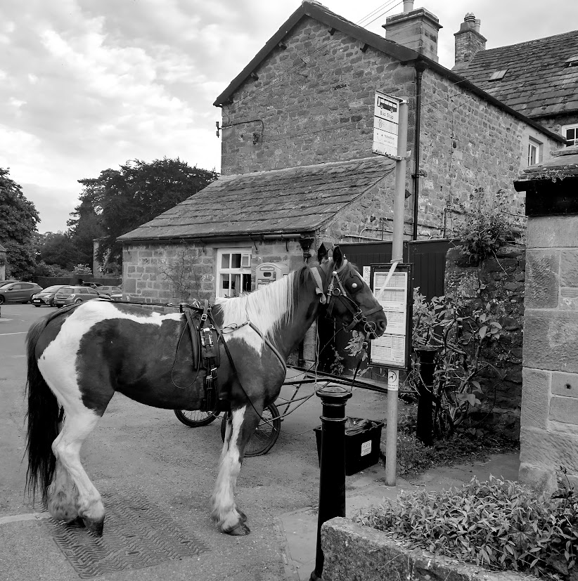 Horses. I won’t show you show-jumpers, or mares with their foals in bucolic meadows. Here’s one waiting patiently for the 159 in Masham one evening as we were on our way to Photo Club. The last bus had left an hour and a half before. In truth, she was on the way to Appleby Horse Fair, an event that. although centuries old, isn’t as long-established as Morris dancing. This horse was one of dozens of horses and vardoes we see making their slow way there in the weeks before.