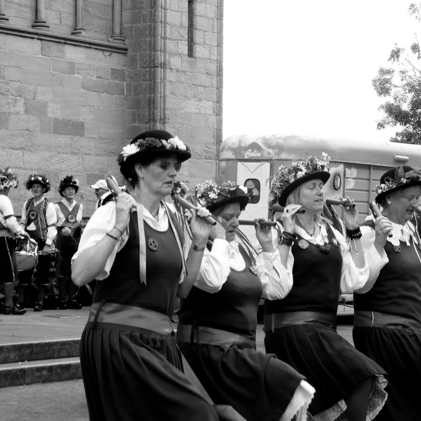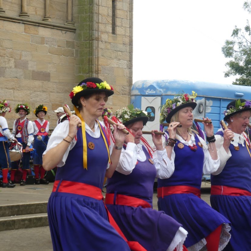 Well, in among all the other acts, Ripon’s Theatre Festival included a few sets of Morris dancers – just as likely to be women as men these days. And they all flaunt terrific Headgear on their Heads. I mean… Hats. Here are a couple: and including two more in the featured photo.