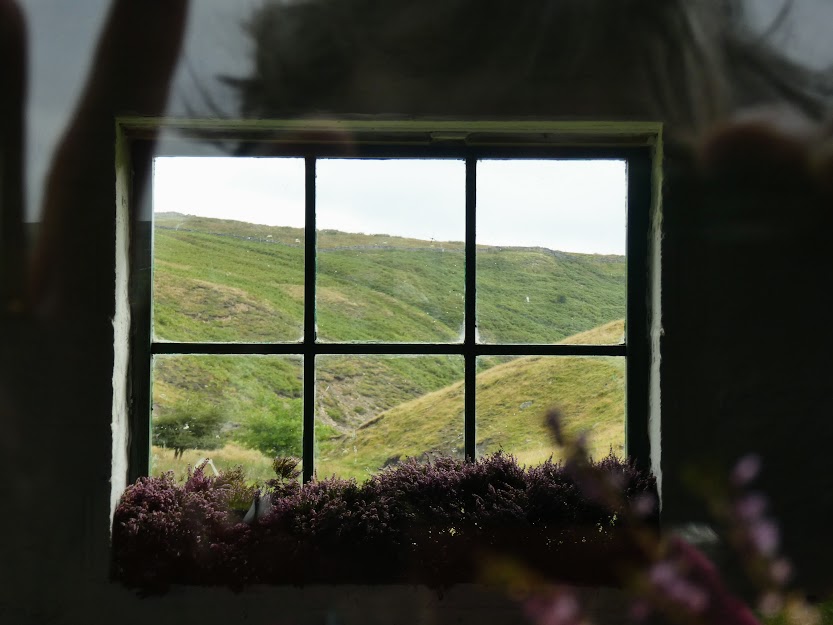 We’d hardly been going more than a mile when we came upon a shooting lodge, now set up as a resting place for the weary traveller. Here’s the view through one of the windows: