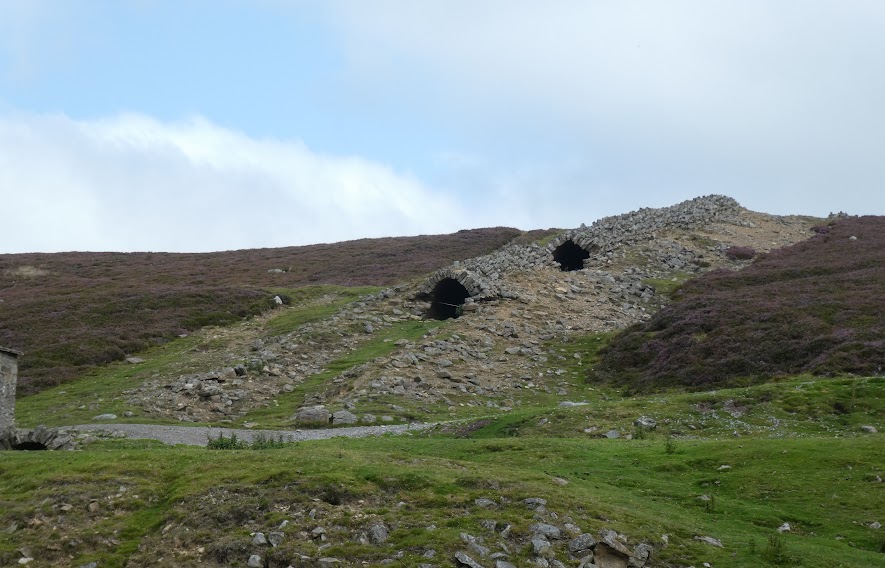 There was buffeting wind, and the smallest hint of rain, so we were glad to shelter for a few moments, and look at the view from inside, through that welcome window . But then out we went again, to the windswept landscape. It’s easy to see traces of the old lead mining industry: the grassed over spoil heaps, the ruined stone sheds, the pits where once a mine was sunk.