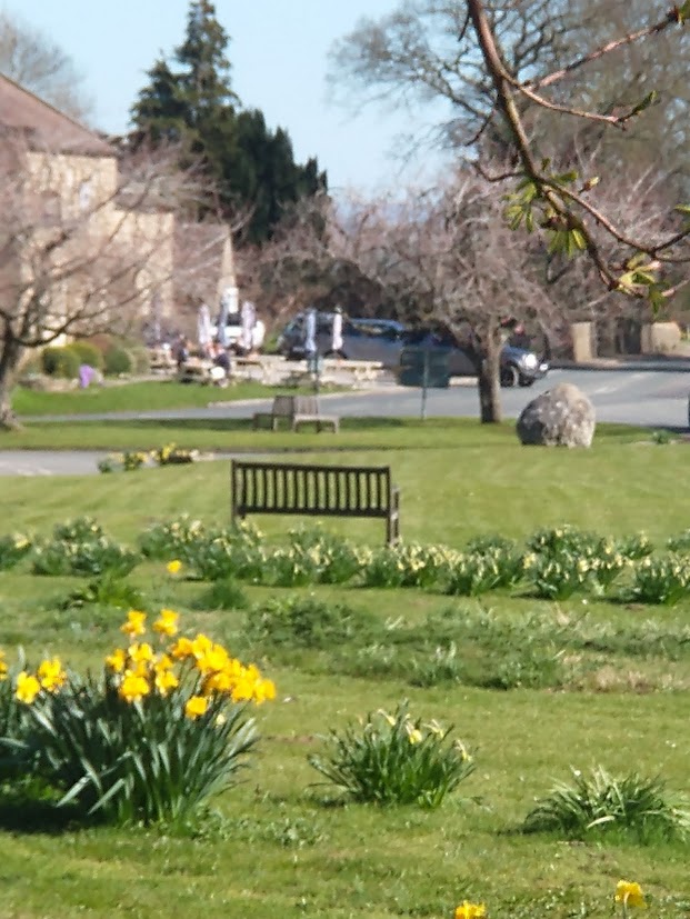 We had a march along a Roman road. And at the end, blue skies, sunshine, and a relaxing cup of tea on the village green at Bainbridge.