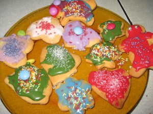 Back into the kitchen, it was time to decorate those biscuits. They tinted their bowls of icing in lurid shades, and made free with all the sugary decorations we provided. ‘Glorious Technicolor’ doesn’t begin to do it justice. Once decorated, they ate the lot, and we sent them off to their parents for the evening crammed full of enough e-numbers to see them through the week. One lad, as he set off home, was heard to say ‘I’ve had a great day’. So had we.