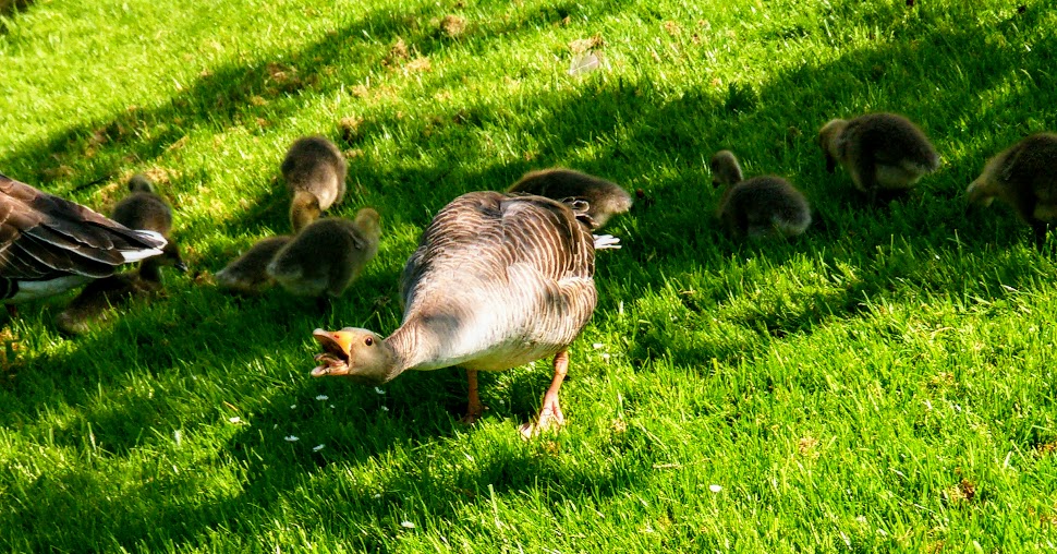 Birdsong is the backdrop to any country walk. But instead of images of birds trilling their hearts out, I’m showing you two shots from times when I was a major source of irritation. ‘Don’t you even THINK of harming my babies’, hissed the graylag goose.