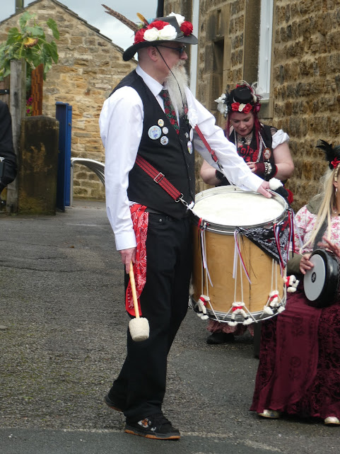They’re a group of women dancers from West Yorkshire. They’re folk dancers. But it’s not as simple as that. They combine Morris dancing with – yes – belly dancing, with a nod perhaps to steampunk. Their gloriously extravagant red, black and white costumes feature – among other things – red and white roses to celebrate their Yorkshire and Lancashire origins . Those of you who are not from these parts may not know that the red rose is the symbol for Lancashire, the white rose, that of Yorkshire. The Red Roses are accompanied by their energetically engaging band t’Thorns. Come and have a look.