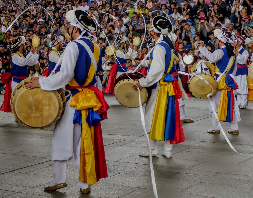 …. or celebrations of Chuseok in South Korea, with insistent drum beating .