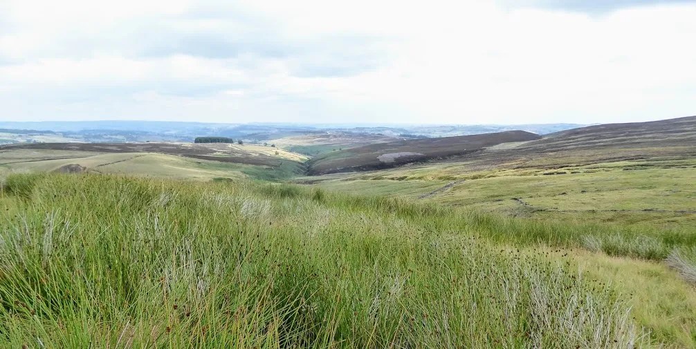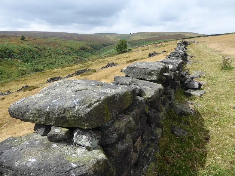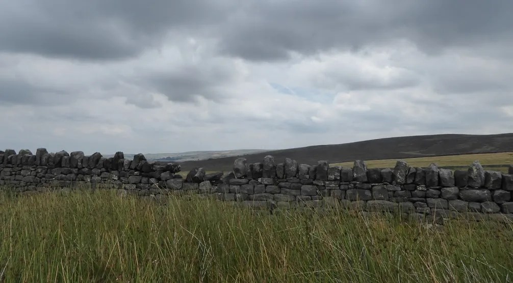 It was the perfect picnic spot for me. The moorland stretched before me, its hillsides rhythmically rising and falling. The world was silent: not that silence in which there is no sound, but that of the living countryside: the low susuration of the swaying grasses; the humming of the wind in my ears; the occasional complaint of a bird sweeping overhead. Beyond the moorland, greener fields lay, chopped centuries ago into rough rectangles by drystone walls. Some held sheep, some cattle, others recently cut hay. The sun warmed my rocky seat, and I was perfectly content.