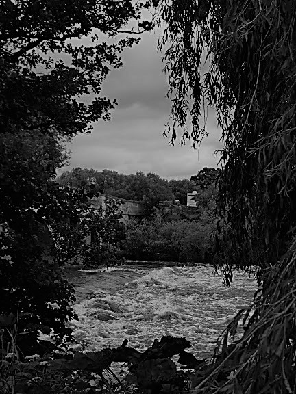The River Ure in spate near Hewick Bridge.
