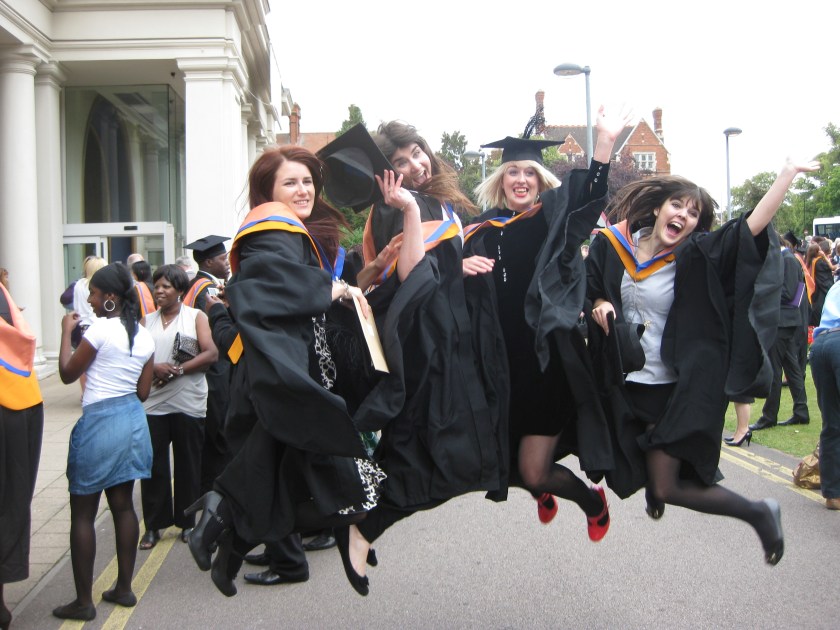 Emily’s is one of the newer universities, and yet the ceremony was as traditional as those in the much older institutions attended by my other two children. Well, why not? Each graduand is part of a tradition of education stretching back to the early middle ages – well before the time of Simon de Montfort. Their colourful robes – and the even more splendid costumes of those with PhDs, reflect that long tradition. They’re rightly proud to wear them. And I’m so proud of all three of my children, and of what they’ve achieved.