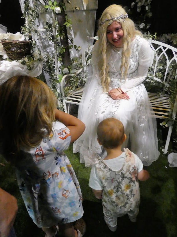 These days the paying public expects more, so this season, the woodland surrounding the cave has been transformed into a fairyland of exactly the kind beloved by small children. Anaïs and Olivia were entranced, especially when they met a real live fairy, all the way from Greece.