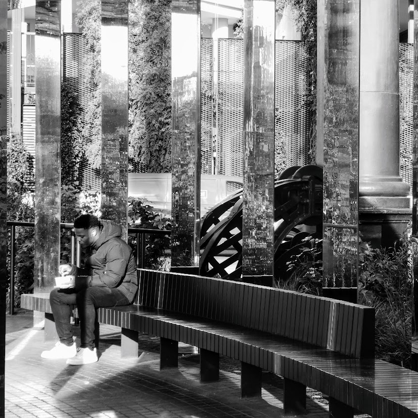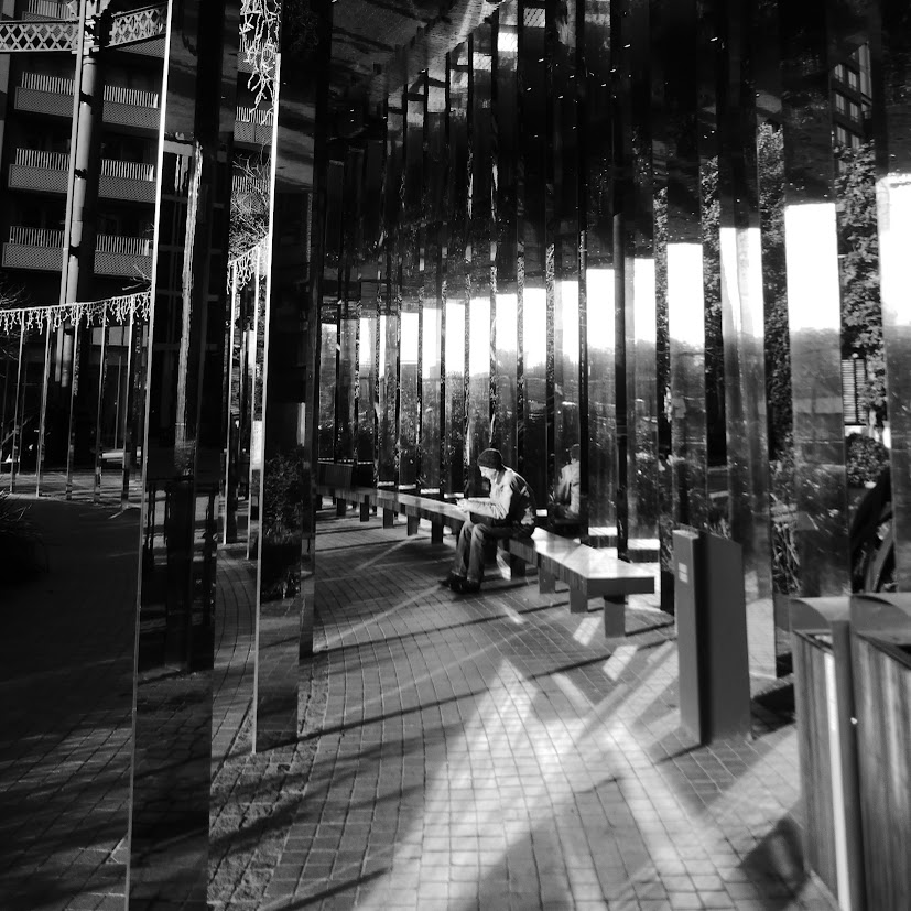 Spotted on a recent trip to Leeds. The Bourse is a refurbished courtyard business area, its windows cleverly designed to slice up the reflections of the buildings opposite. Sit awhile on one of its benches in this oasis of peace in a busy quarter of the city.