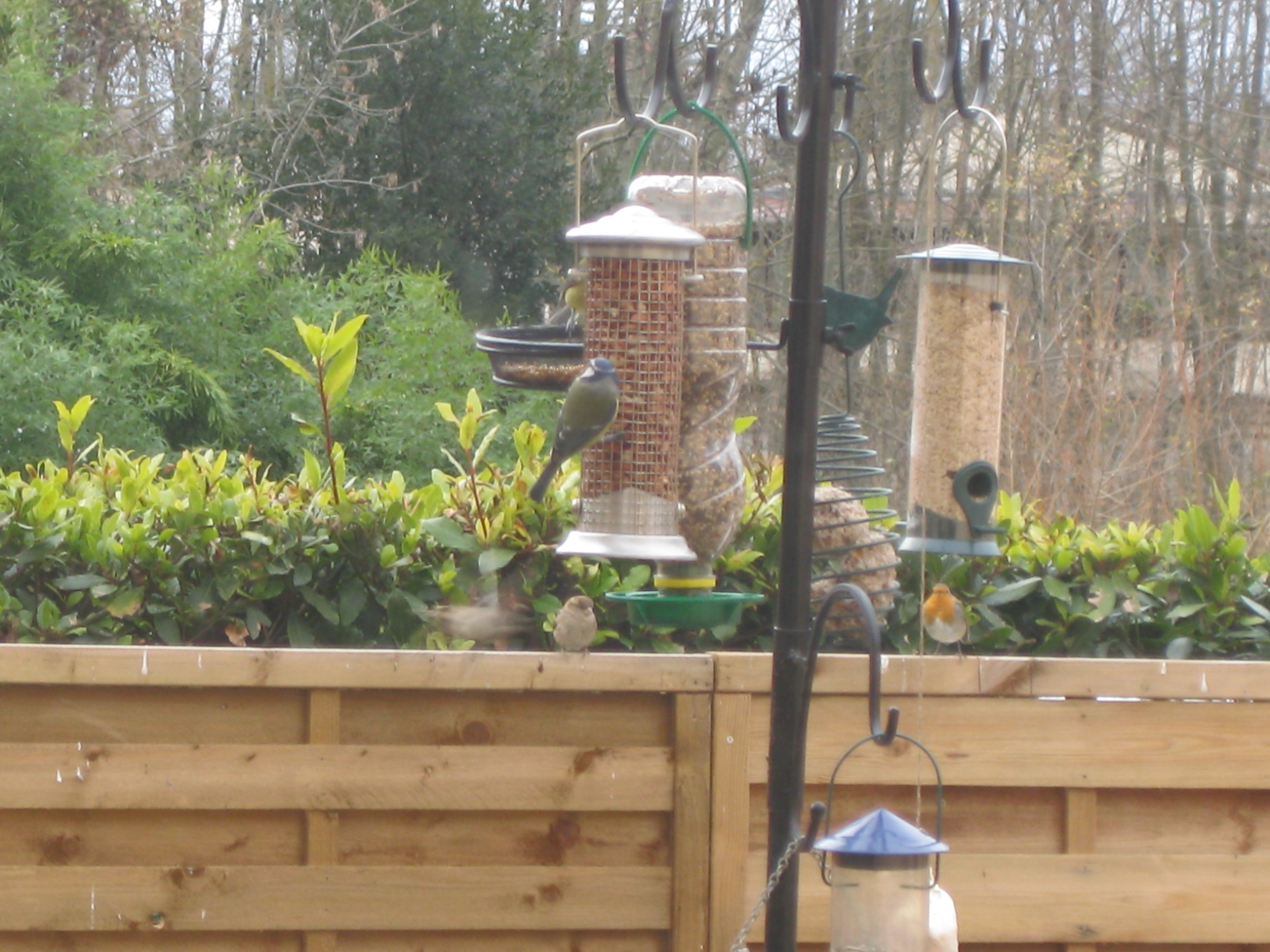Here in our back yard in Laroque, we’re doing our best to keep our local birds happy. The usual suspects visit us: sparrows, blackbirds, various tits, robins, wagtails, redstarts: once, but only once, on 14th February last year, a whole flock of goldfinches descended and ate all we could offer.