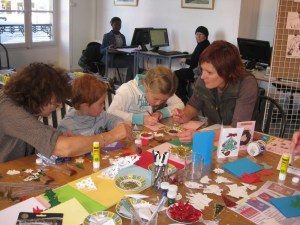 The runaway hit of ‘The Story of Christmas’ in Lavelanet library which I posted about last week, has been the chance to make Christmas cards in the English manner. Children and adults alike have hunkered down in the library and considered the craft items on offer before turning their minds to creating a selection of cards for all the special people in their lives. I wonder if they’ll acquire the habit, and do the same thing next year?