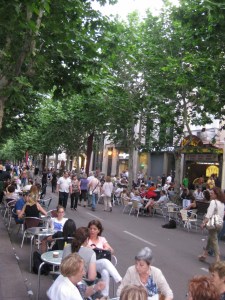 The main Rambla had been closed off to traffic, and it seemed as if the entire town’s population was enjoying strolling around, settling occasionally for a drink or some food with friends or family.
