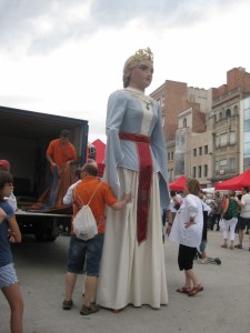 Because on Saturday and Sunday Sabadell had a festival. We’ve struggled to find out why. It doesn’t seem to have been for Corpus Christi, which provided nearby Sitges with an excuse to carpet the streets in flower petal pictures. It looks as if perhaps it was just an excuse for the inhabitants to dust off the drums, unpack the ‘gigantes’ – papier maché heads surmounting giant bodies, dig out the costumes, order the fireworks and have a good time.