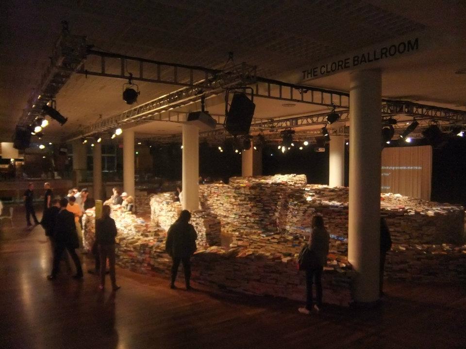 Still, we enjoyed staying with Tom and Sarah in Olympic-happy London, and spent an evening round the South Bank area. Eat near Borough Market and you’re sure of a tasty meal cooked with decent ingredients: the convivial and cheery atmosphere comes free. Wander along from there to the Festival Hall, and you’ll be in the company of Olympic visitors from just about every country you can think of, as well as locals, just out to enjoy being alongside the Thames and all that this particular stretch of river offers. Tate Modern and the Globe weren’t open for business at that time of the evening, but there’s still plenty to see. The National Theatre has a slightly zany pop-up bar, the Propstore, furnished with props from popular productions. We were aMAZEd by the book maze we found in the South Bank Centre, constructed from some 250,000 books, most of which we found we wanted to read, if we hadn’t already.