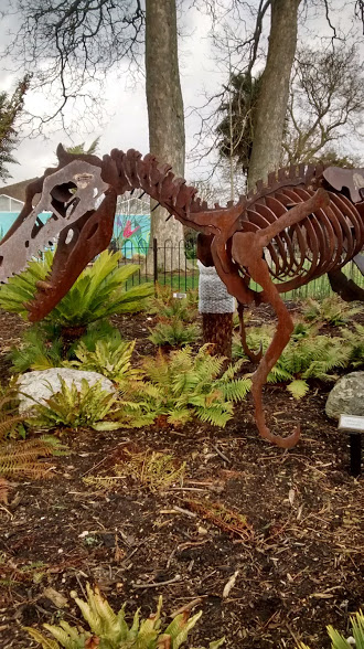 Just before home time, we came upon this dinosaur. He lives out his days in the primaeval forest created in the Horniman Museum Gardens. The primaeval plants are currently protected from the winter storms by very unprimaeval plastic, which slightly spoils the effect.