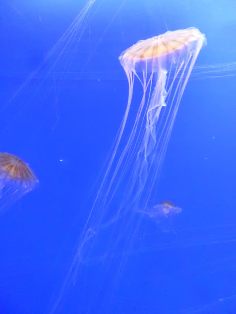 Diaphanous sugar-pink wraiths trailing long floating tendrils pulsated gently round their royal blue tank: hypnotic: mesmerising. They neither paused nor hurried. They simply oscillated, surged, ebbed, flowed. These ethereal creatures didn’t merit their prosaic name of Black Star Northern Sea Nettle. Who dreamed that one up?