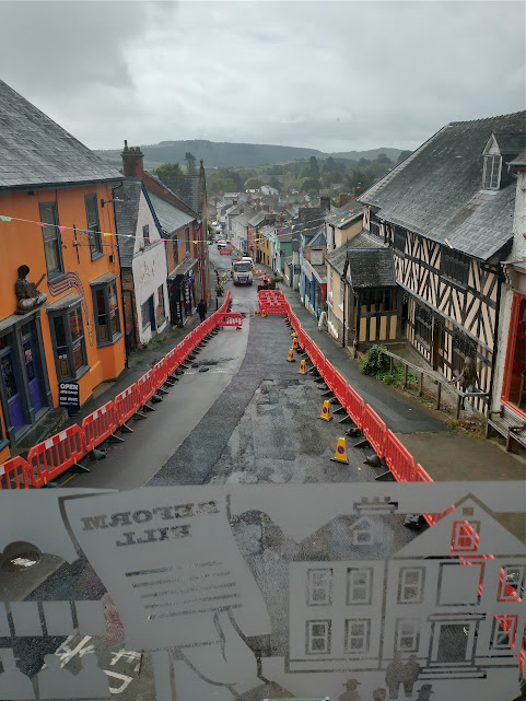 Not on the main road to anywhere much, Bishop’s Castle (nowadays it no longer has a castle) may be somewhere to settle if you’re something of a creative type: an artist, a musician, a writer or a craftsperson. It’s an interesting town for a day trip – in our case because we were going to meet fellow blogger Tish Farrell, whose blog Writer on the Edge is one I know many of you read (And if not, why not?). We both enjoyed a morning with Tish and her husband before they waved us off to discover the town under our own steam.