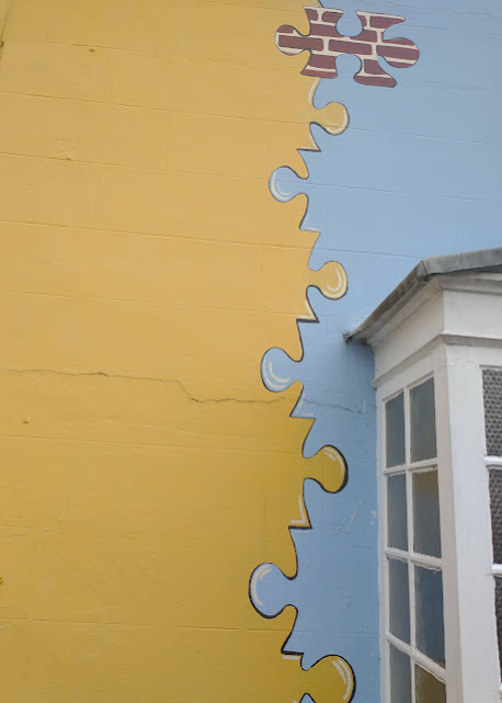 Perhaps my favourites were three houses at the bottom of the street. Terraced, and each painted a vibrant, different colour, the first was ‘zipped’ to the second, which was the ‘jigsawed’ to the third.