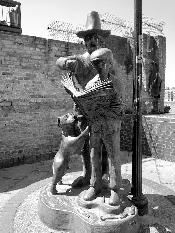 It was time to head back along the southern shore. This was easier. My morning journey had been hampered by diversions as a giant sewage system was being installed along the route of the path. My return through the evocative-sounding communities, reminiscent of Dickens (Bermondsey, Rotherhithe) was straightforward. It was here that I learnt about Alfred and Ada Salter, both born into relative privilege, who over a hundred years ago, devoted ther lives to alleviating the tough lives of the poor in Bermondsey. Quakers, Alfred was an outstanding doctor who treated poor patients for free and imported into Bermondsey all the latest medical clinics and facilities, creating in miniature an ’NHS before the NHS’. In 1922 Alfred was elected as MP for Bermondsey, representing Labour. Ada devoted her life to the demolition of slum housing. She built a model housing estate at Wilson Grove, campaigned against air pollution as early as 1913, and on the London County Council carried through a programme for the beautification of all of London Borough parks, children’s playgrounds and tree-lined streets. She became the first female Mayor of London – and the first Labour mayor! They insisted on living amongst the poor they devoted their lives to, and in 1910, their only child Joyce died of scarlet fever: a tragedy they never got over. Alfred and Ada earned the unending trust, support and love from the community they devoted their lives to. Somehow though, I only seem to have a photo of the statue of Joyce, playing by the Thames. The Salters were, I think, the kind of couple to gladden the heart of Anabel, The Glasgow Gallivanter.