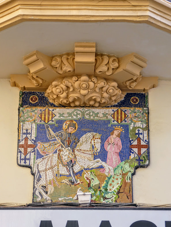 Then there are the charming details every town must have: the mosaic of St. George, Catalonia’s patron saint (and also of England; Aragon; Georgia; Lithuania; Palestine; Portugal; Bulgaria; Ukraine; Malta; Ethiopia; Russia; Bosnia; Kosovo & Serbia. To name but a few). The little cats painted at pavement level. The gaping mouth letter box (but how to get a letter in?). The door knockers.