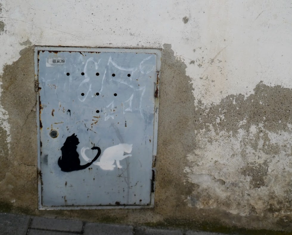 … a promising back street – a couple of street artists preparing the ground for a new work. I’m just going to show you the preparations in action. We popped back a couple of hours later to inspect progress, but were underwhelmed.