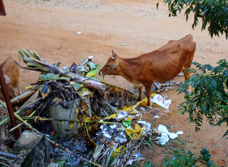I was woken in the morning to local sounds: the Muslim Call to Prayer transmitted by loud microphone at, erm, 5.30 a.m. : the church bells ringing a few minutes after that (20 % Muslim and Christian communities here): the street hawkers who kicked in at about 6.45: the day-today noise which seems to begin so early in Indian communities.