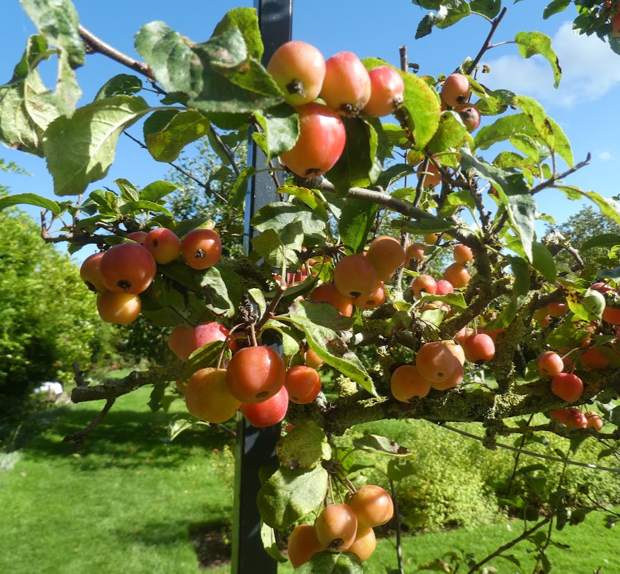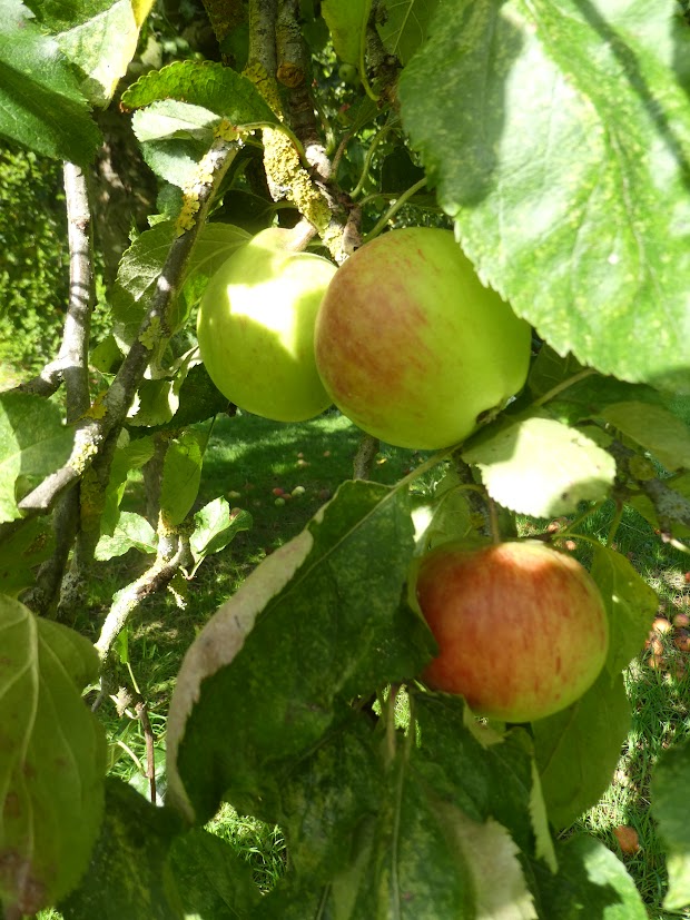 We went and had a stroll round the gardens, to calm down. They’re past their best at the fag-end of the season, but it was pleasant anyway, especially the apple orchard where we ended up.