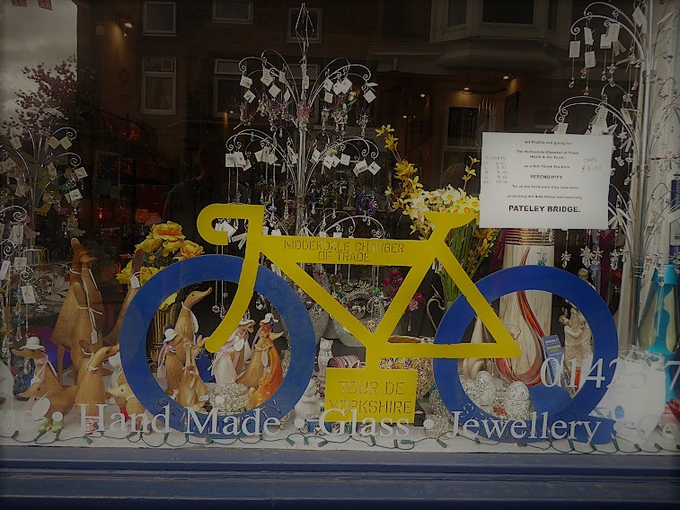 A few miles away is Pateley Bridge. I wonder if the shops there still have the displays they had when the Tour de Yorkshire was in town?