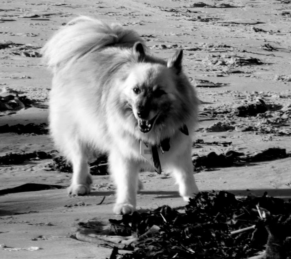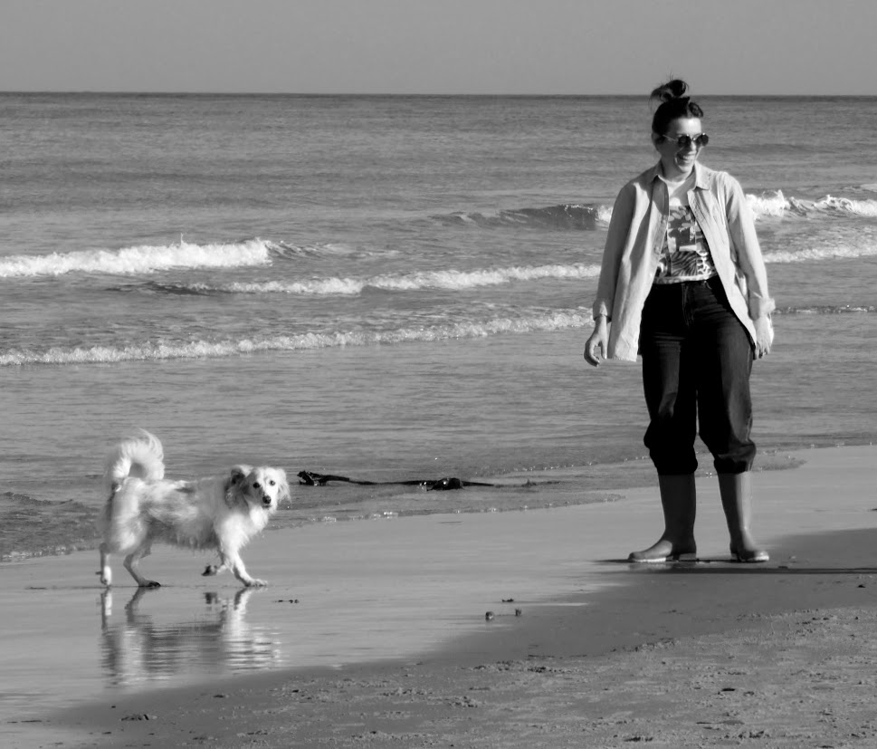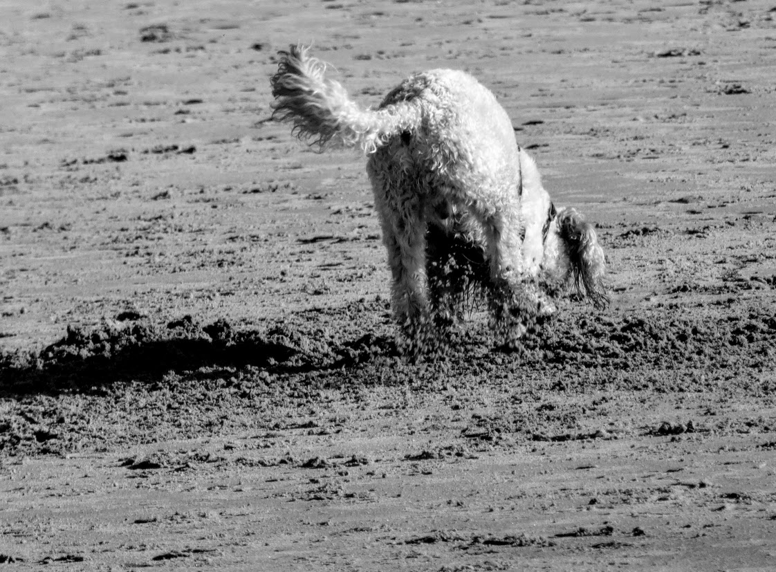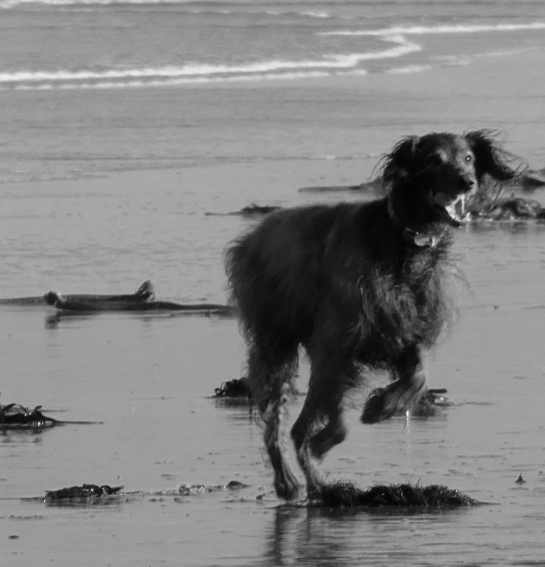So I’m taking you to Bamburgh in Northumbria, where we were walking recently on the best sort of afternoon at an English seaside, with bright sun, breeze and gentle warmth. It was an afternoon for beach strolls and games … and for taking the dog out to play.