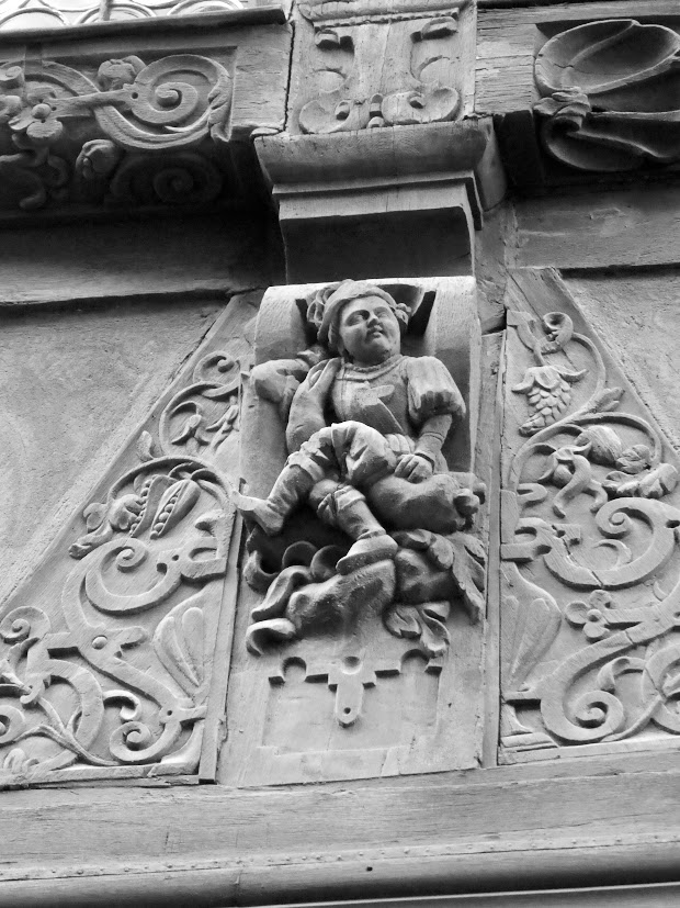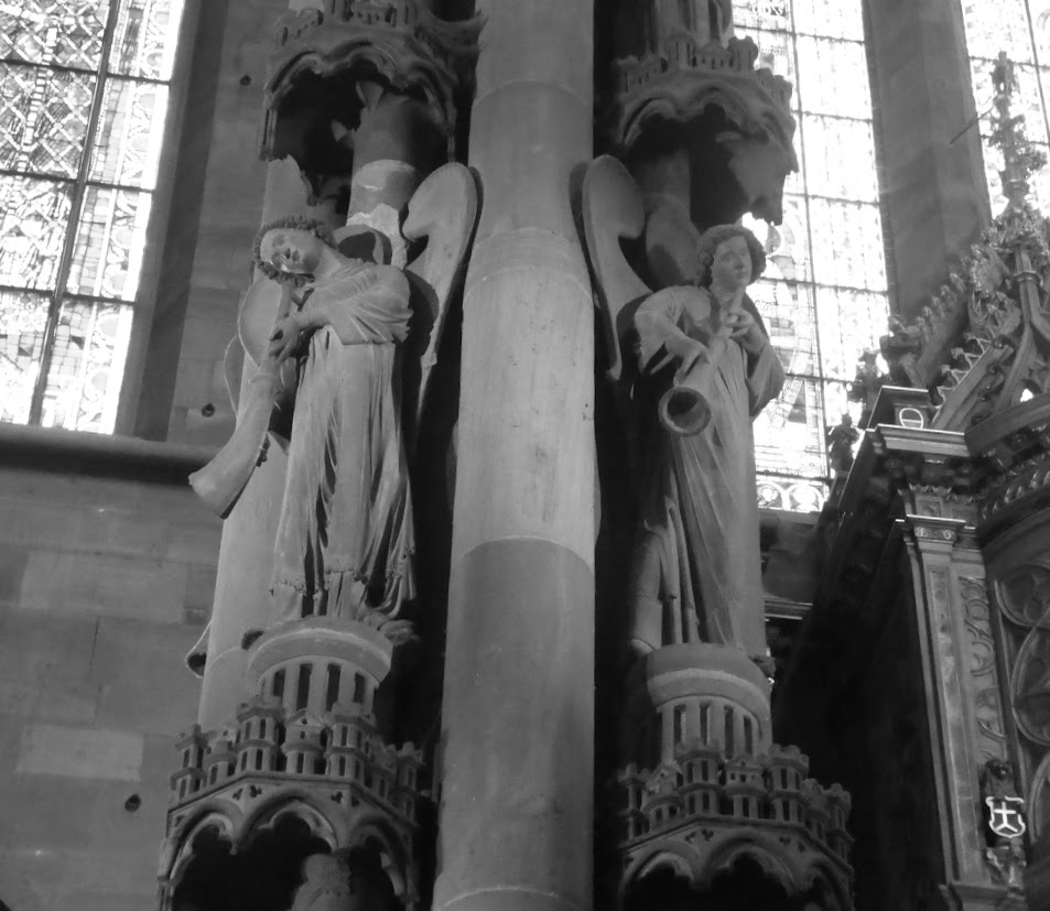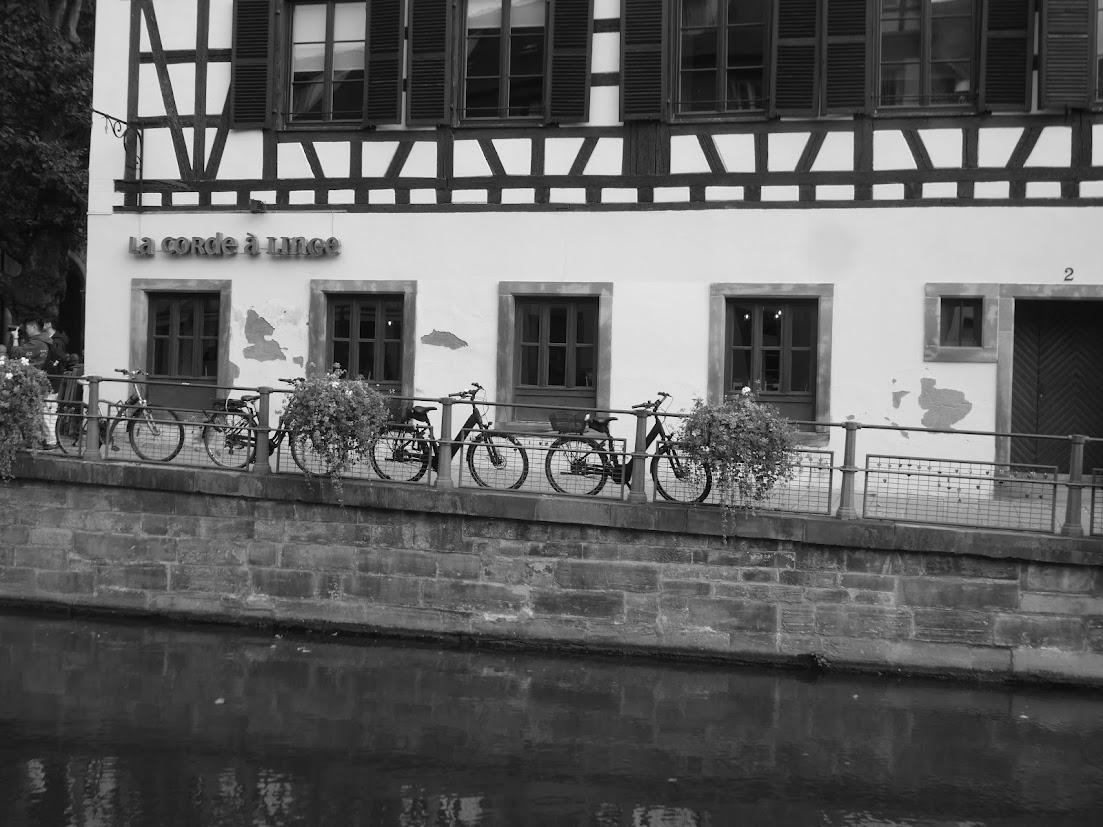 For this week’s Monochrome Madness, I’m showing a few images from Strasbourg: its historic city centre, including the area near and in the Cathedral, and a few odds and ends such as a weather vane, a single lonely wolf (?) on a riverside brick wall, and a few of the many bikes there.