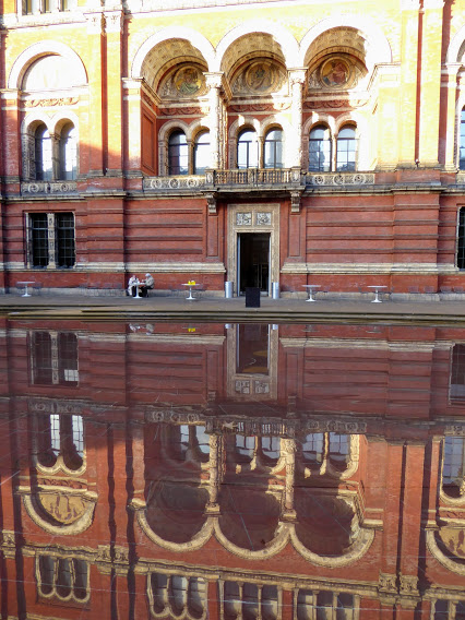 Let’s have a bit of culture, and have a Museum Tour. Our only aim is to find Things That are Pink. We’ll start off at the V&A in London: there’s a view of one of the entrances in the featured photo. In fact we won’t have time to go inside – there’s plenty of pink outside. Then we’ll catch a bus over to the Horniman, and see its Aquarium, its Butterfly House, and pop William into the changing colours of the lightbox which was there for a temporary exhibition on colour. Then it’s over to Dulwich Picture Gallery, just for a very quick look round. We’ll whiz down to Gloucestershire, to Slimbridge. It’s not a museum of course, but its purpose is collecting and educating. We’ll only stop long enough to find two pink flamingoes, because then we have to get straight over to Spain, to Cádiz and to El Museo del Titere – The Puppet Museum. If we hurry, we can be home in time for tea.