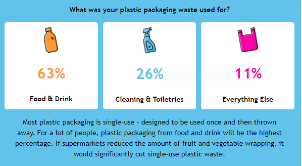 Honestly, we do try. Our weekly vegetable shop is a seasonal organic veg. box from Riverford, which arrives in a re-useable cardboard box and nowt else. We supplement this with a trip to the market, taking our own packaging. Household and bathroom products such as washing up liquid and shampoo come from the refill station at our local GreenHouse. But still plastic packaging enters the house – every time we visit the supermarket actually. The cheese that’s packed in plastic: the odd box of blueberries: the package of pitta bread … and so on and so on.