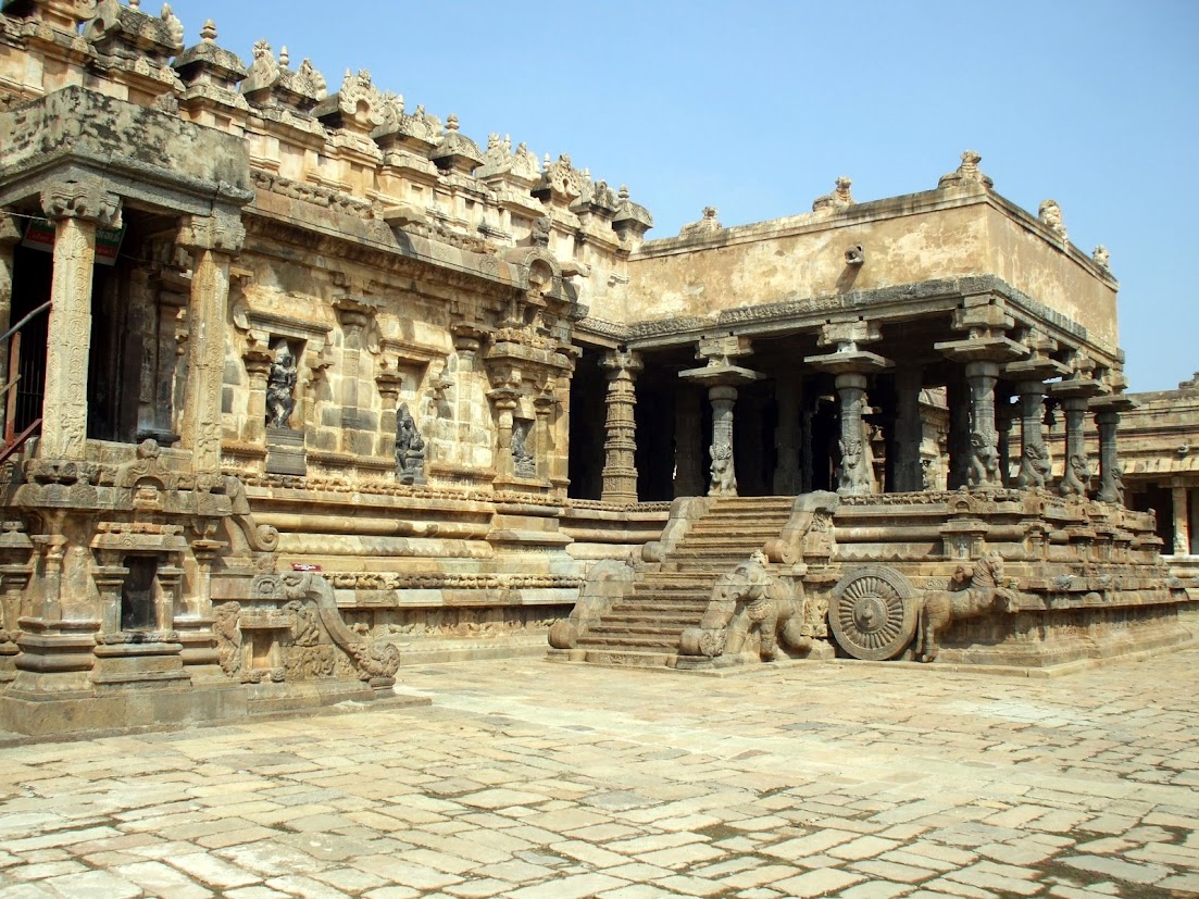But lunch called and a hard hunt eventually found us a not bad spit-and sawdust lunch. Then the bus to Dharasuram. Again, the temple here is superb. Wonderful rows of miniature and not-so miniature sculptures, But the pavings were so hot. Really uncomfortable. Because of course, on holy ground, our feet were bare. It was great – we thought – that the sculpture was unpainted. But talk about sculpture to excess! No surface was unadorned.