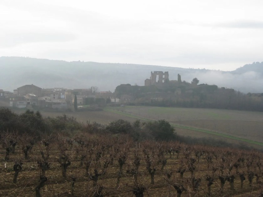 Cold. Pale thin fog baffles the contours of the hillsides, and those of the distant castle at Coustassa. Glimmering frost bristles the short maquis grass beneath our feet. A watered lemony sun high above us attempts to burn winter away, and eventually does so.