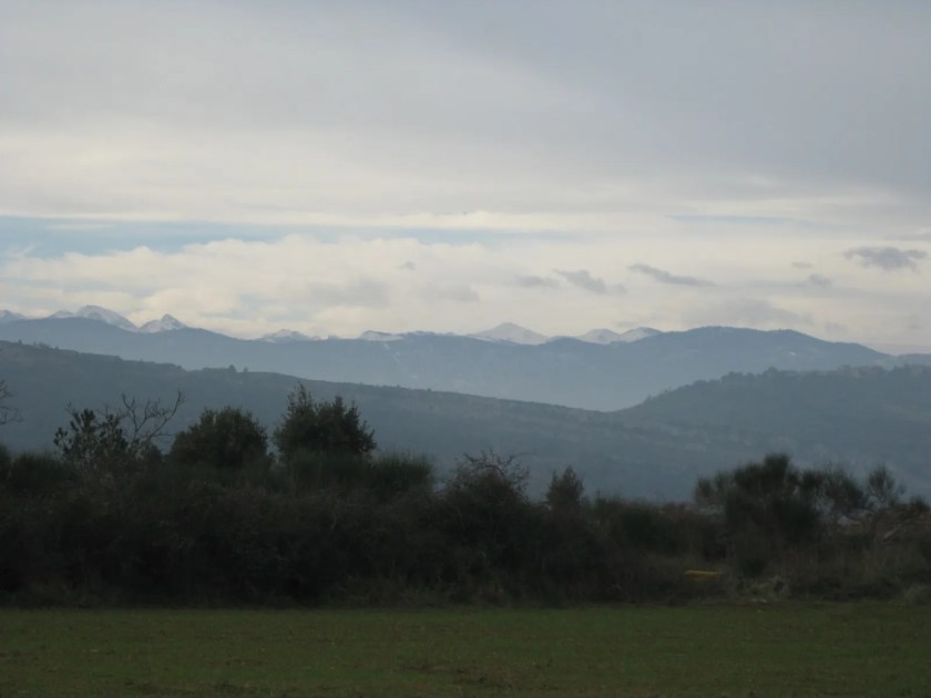That’s when we have our first view of Bugarach – shown in the featured photo – the imposing thick-set mountain which dominates this part of the Aude, because it stands alone, rather than as part of a range, and today is pretty much thatched in snow.