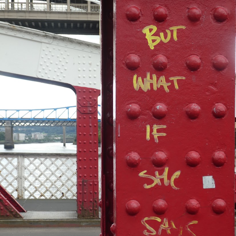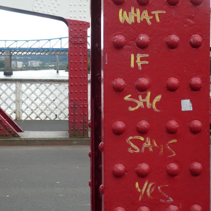 When I posted a version of the image above as part of Becky’s #SimplyRed challenge, no fewer than three readers suggested I issue a challenge of my own: to produce a piece of micro fiction based on that intriguing piece of graffiti. Who’s up for it? You three who suggested it? (You know who you are). I supppose I’ll have to too. 100 words maximum. I gather that this form of story telling is called a drabble. If you’re up for it – by this time next week, please….