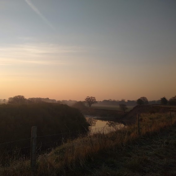 I didn’t plan to post today, but since I shared my sundown stroll with you last week, it seems selfish not to share the delight of a bright sunrise walk this morning. I left the house at 6.20, going along the River Ure, up the hill to a neighbouring farm, and back through the grounds of Sleningford Hall.