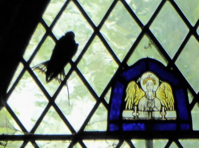 The site includes the not-at-all-ruined parish church which is still very much in use. When we popped in, we didn’t expect to find a poor swallow, struggling to get out. Church members were trying to help him, but he was still vying with stained glass angels as we left. Poor swallow.