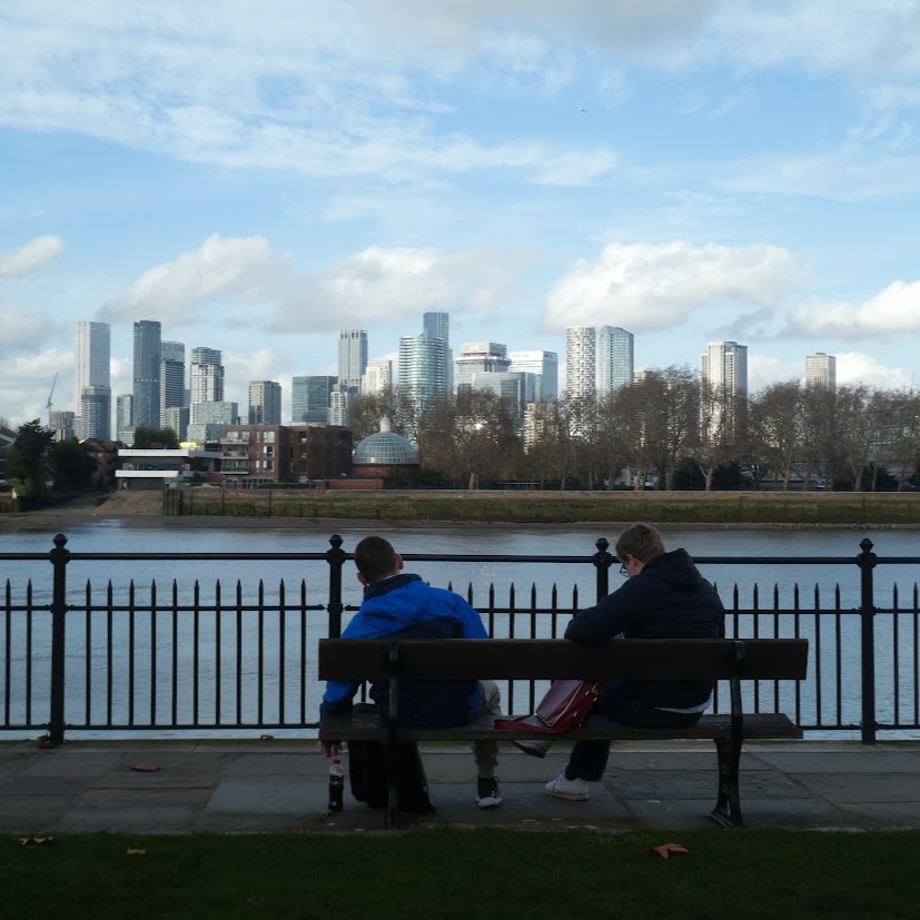 On Thursday I walked the Thames Path from Woolwich via the Thames Barrier and the Millennium Dome to Cutty Sark in Greenwich. A story for another day. Today I’ll just show a view across the Thames, as enjoyed by two picnickers on a bench in the gentle shadow of the buildings near the Dome, especially selected for Jude’s Bench Challenge, and Becky’s NovemberShadows.