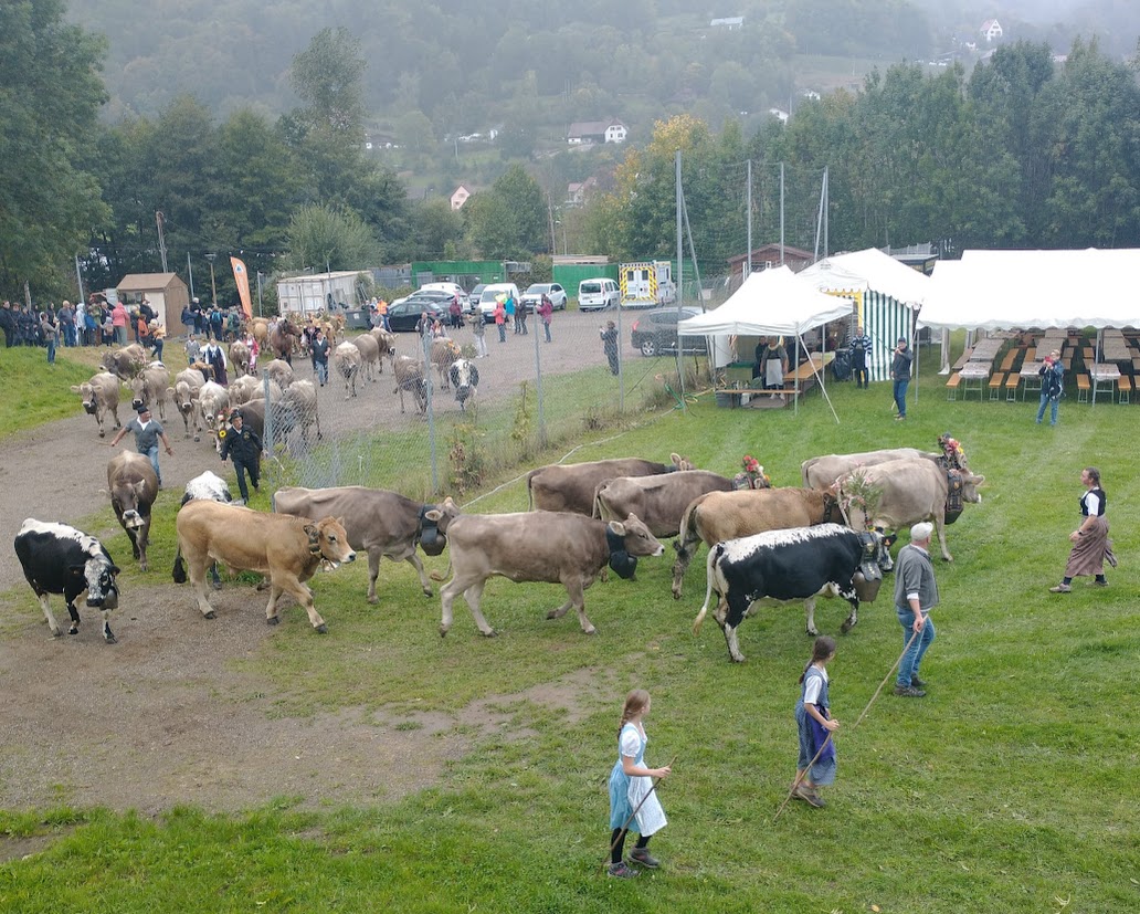 We know that over in the UK you are battling with Storm Amy, so I’ll keep quiet about the fact that though it is raining here, it’s the only expected poor-weather-episode in our holiday. So we’ve decided to have an afternoon off, allowing me to send lots of postcards from the Fête de la Transhumance in nearby Muhlbach which we visited this morning, ahead of the deluge we’re currently experiencing.