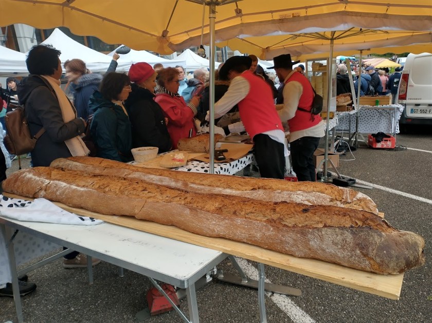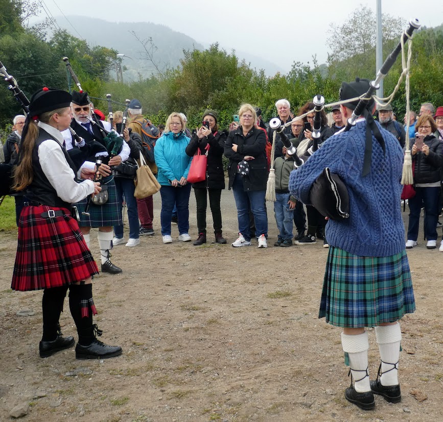 The first people we met after we’d arrived were a group of three people in kilts tuning up their bagpipes. We greeted them in French, then reverted to English, assuming they were Scottish. But no! They come from Strasbourg, speak not a word of English, but are Passionate about Bagpipes, and here they were, ready to play their cornemuses for everyone’s bemusement and delight.