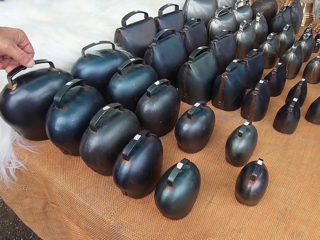 We didn’t stay for the highpoint of the event for many of the locals, the large communal meal, thankfully under canvas. But before we went, we looked round the market: local cheeses, sausage, sweetmeats – cowbells too.