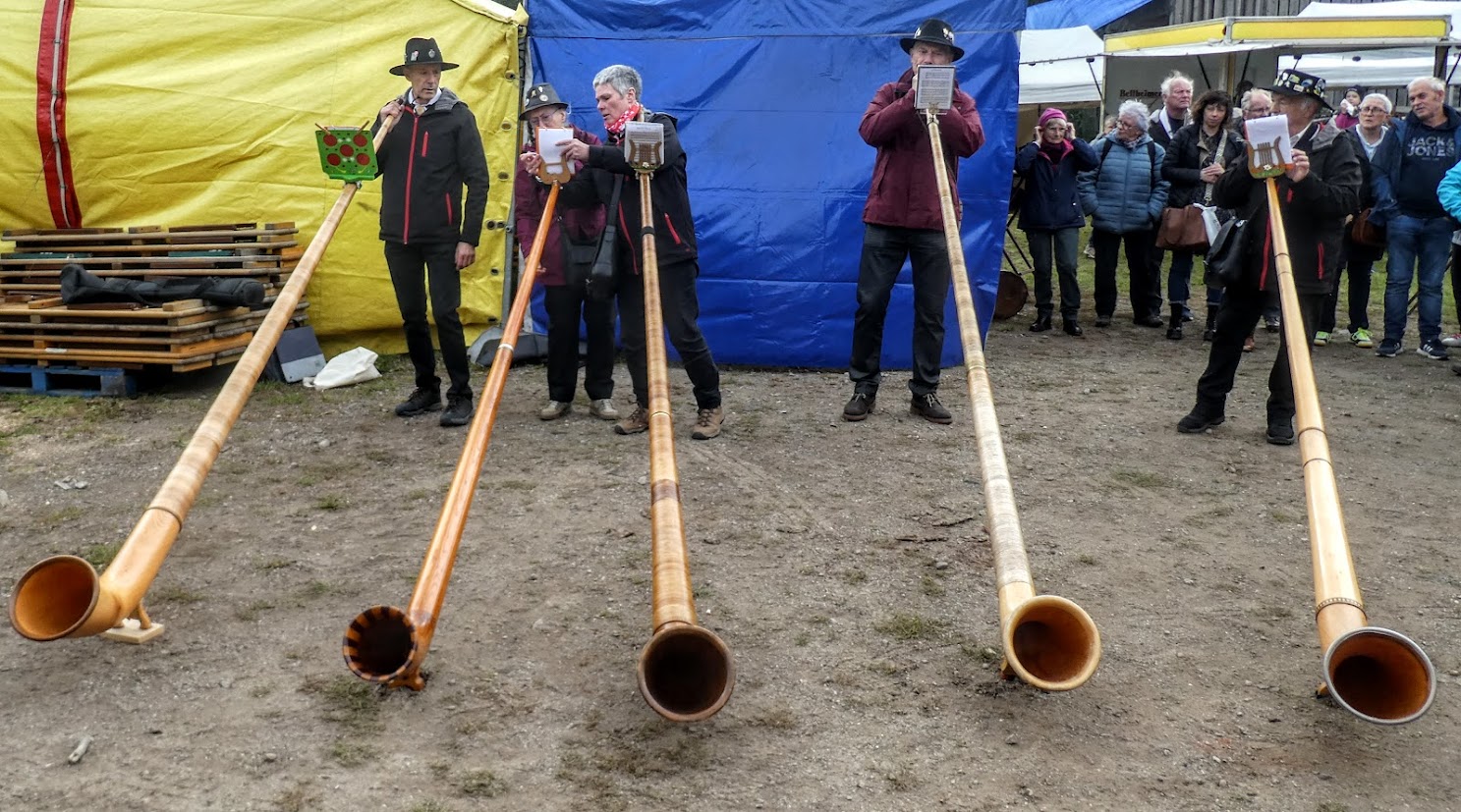 The Alphorn was originally used to call cattle. These days it’s the province of musical folklore enthusiasts and there were several bands of them playing today.