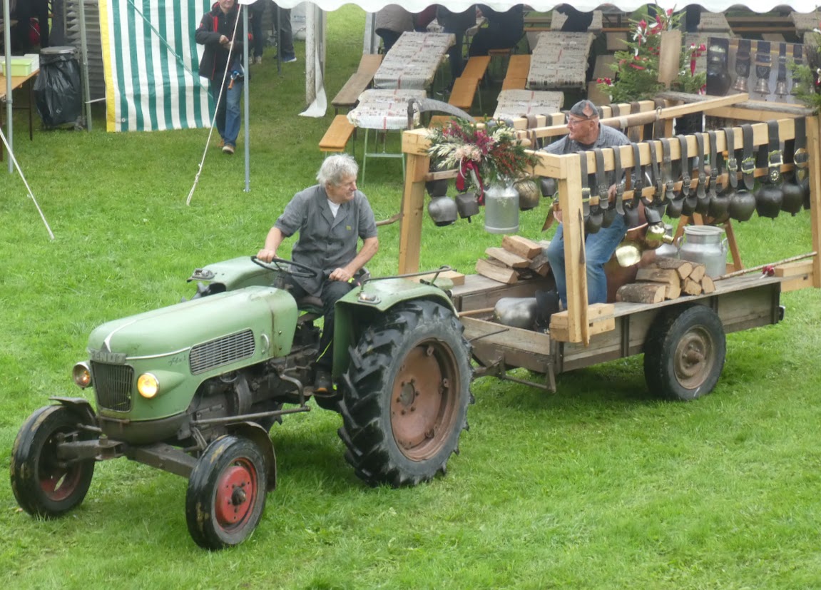 On our way up to view the procession we found the tractor that carried so many of the cowbells the animals wear when in their summer pasture, to keep tabs on them.