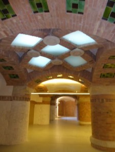 Modernism? Think of it as Art Nouveau, Catalan style. You’ll recognise it in the works of Antoni Gaudi. Montaner found inspiration from Moorish architecture. Playful looking mosaics and the light-flooded areas are the special feature of his buildings. What we noticed straight away was bold colour, bold decoration: rich-hued tiled roofs: and within, tiles and mosaics in sunny yellow, grass green, sky blue.