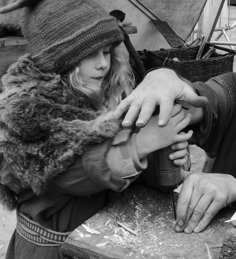 This last set is for Leanne’s Monochrome Madness, because she invites us to take one photo, and crop it three different ways. So – two solo portraits, one two-handed portrait, all for the price of one shot of a Viking and his slave industriously working together.